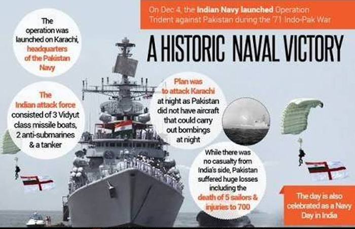 In the 1962 Indo-China war, and the 1965 Indo-Pak War, the Indian Navy played little role. In fact, they were at the receiving end in 1965 when the Pakistani navy launched a much publicized raid on the Indian port of Dwarka with a force of seven warships causing extensive damage. In 1971 came payback time.